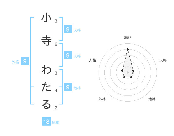 小寺 わたるさんの総格は18画の4点!