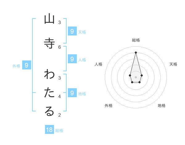 山寺 わたるさんの地格は9画の1点!