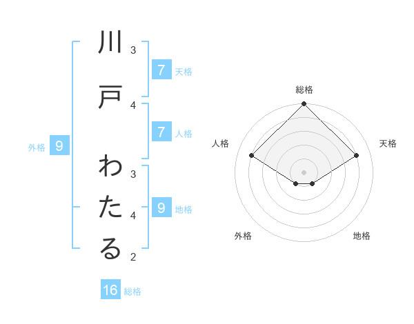 川戸 わたるさんの総格は16画の5点!
