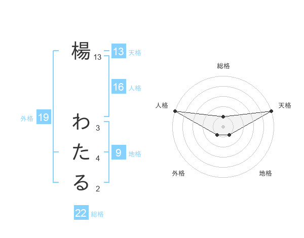 楊 わたるさんの天格は13画の5点!