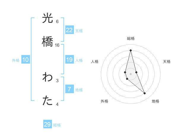 光橋 わたさんの総格は29画の4点!