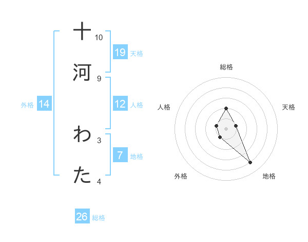 十河 わたさんの総格は26画の2点!