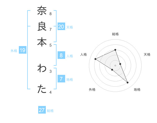 奈良本 わたさんの総格は27画の3点!