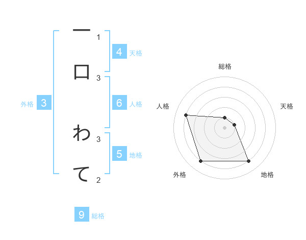 一口 わてさんの総格は9画の1点!