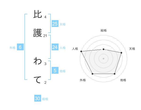 比護 わてさんの天格は25画の4点!