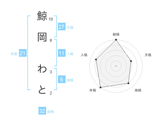 鯨岡 わとさんの総格は32画の5点!