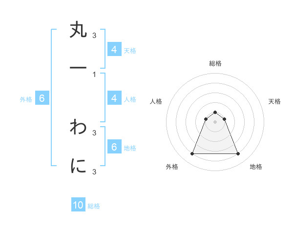 丸一 わにさんの地格は6画の4点!