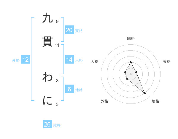 九貫 わにさんの総格は26画の2点!