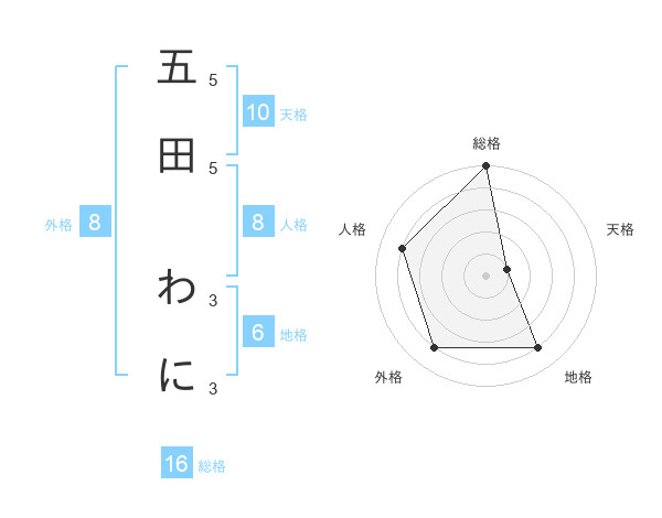 五田 わにさんの総格は16画の5点!