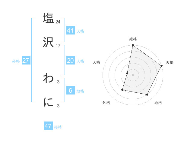 塩沢 わにさんを姓名の画数から五運を鑑定