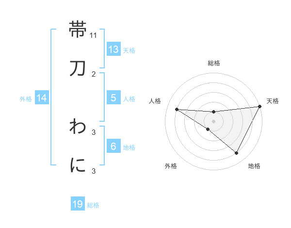 帯刀 わにさんを姓名の画数から五運を鑑定