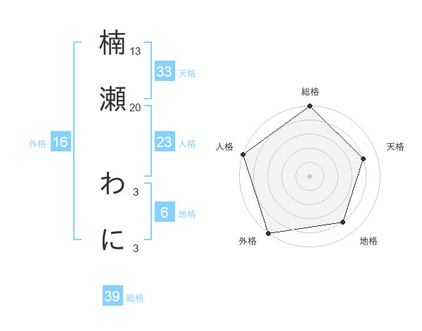 楠瀬 わにさんの総格は39画の5点!