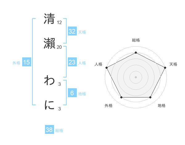 清瀨 わにさんを姓名の画数から五運を鑑定