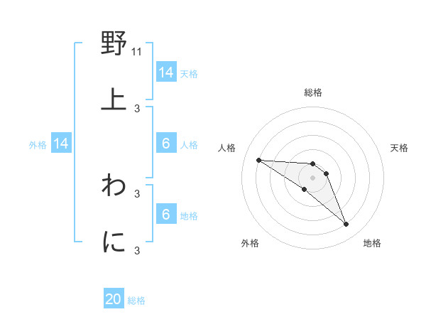 野上 わにさんの総格は20画の1点!