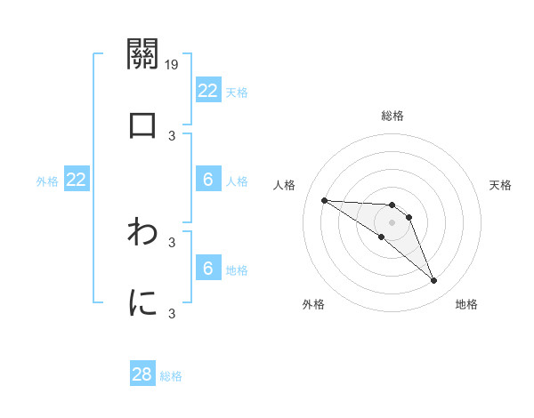關口 わにさんの天格は22画の1点!