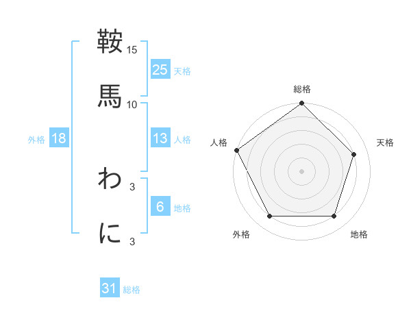 鞍馬 わにさんの総格は31画の5点!