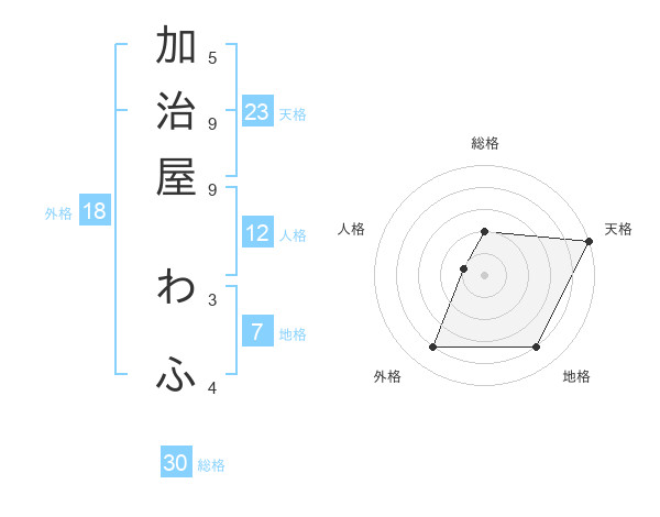 加治屋 わふさんの総格は30画の2点!