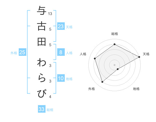 与古田 わらびさんを姓名の画数から五運を鑑定