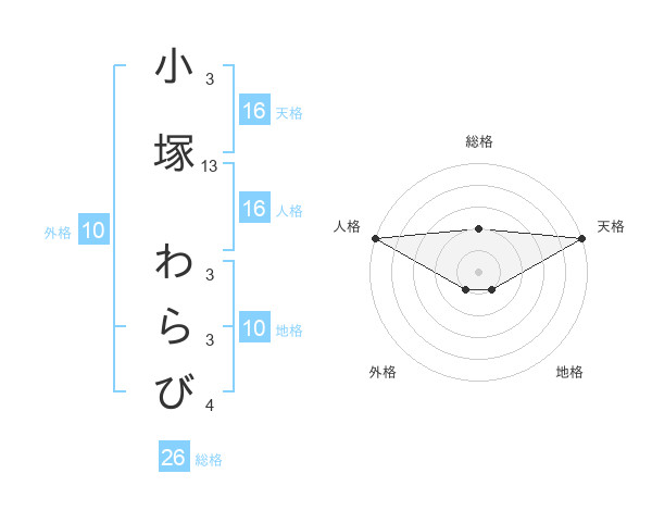 小塚 わらびさんの天格は16画の5点!