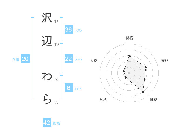 沢辺 わらさんの総格は42画の3点!