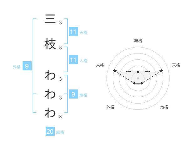 三枝 わわわさんの総格は20画の1点!