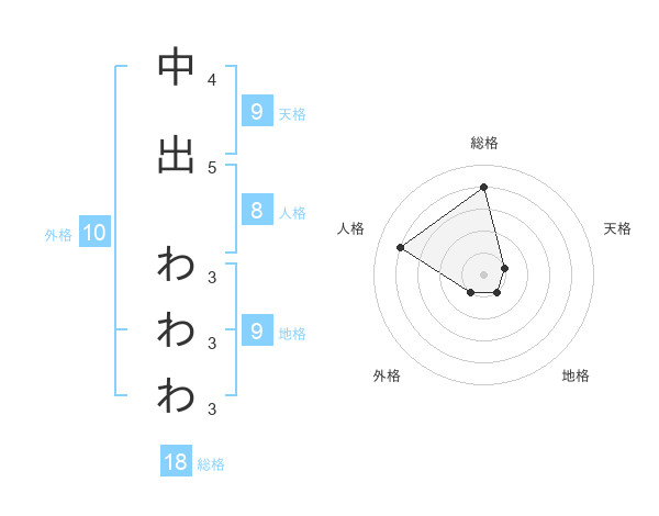中出 わわわさんの総格は18画の4点!
