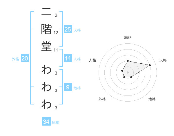 二階堂 わわわさんを姓名の画数から五運を鑑定