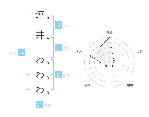 坪井 わわわさんの総格は21画の5点