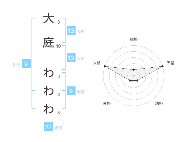 大庭 わわわさんの天格は13画の5点!