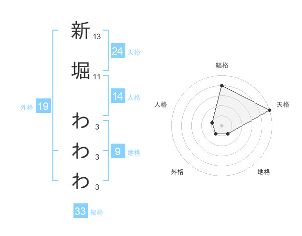 新堀 わわわさんを姓名の画数から五運を鑑定