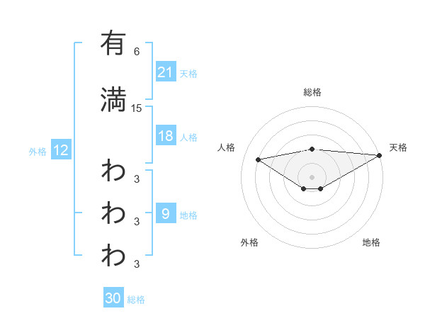 有満 わわわさんの天格は21画の5点!
