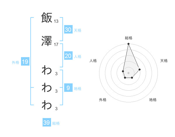 飯澤 わわわさんの総格は39画の5点!