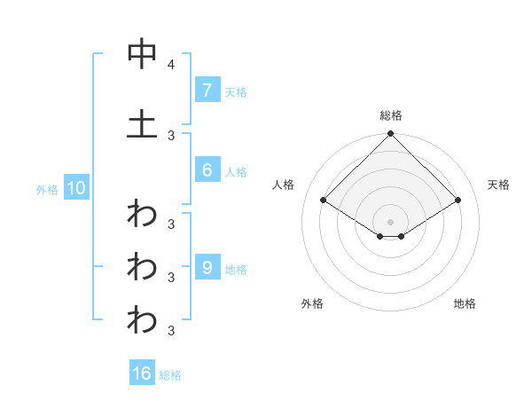 中土 わわわさんの総格は16画の5点!