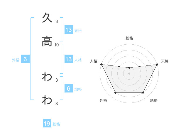 久高 わわさんの天格は13画の5点!