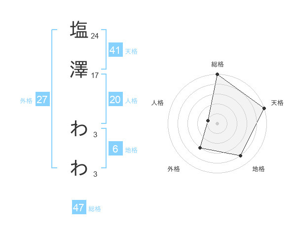 塩澤 わわさんを姓名の画数から五運を鑑定