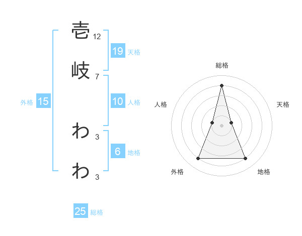 壱岐 わわさんの総格は25画の4点!