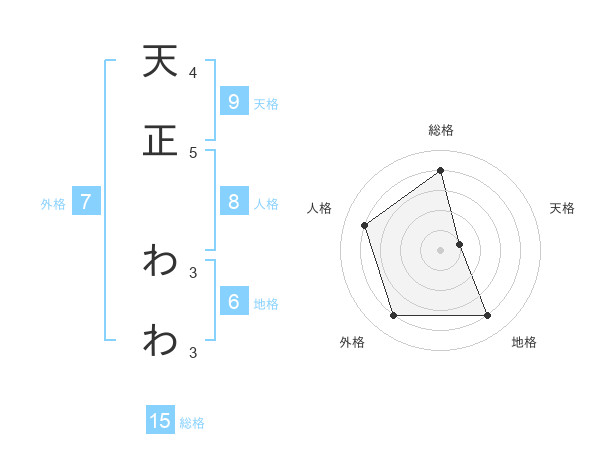 天正 わわさんの総格は15画の4点!