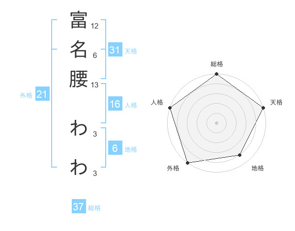 富名腰 わわさんの総格は37画の5点!