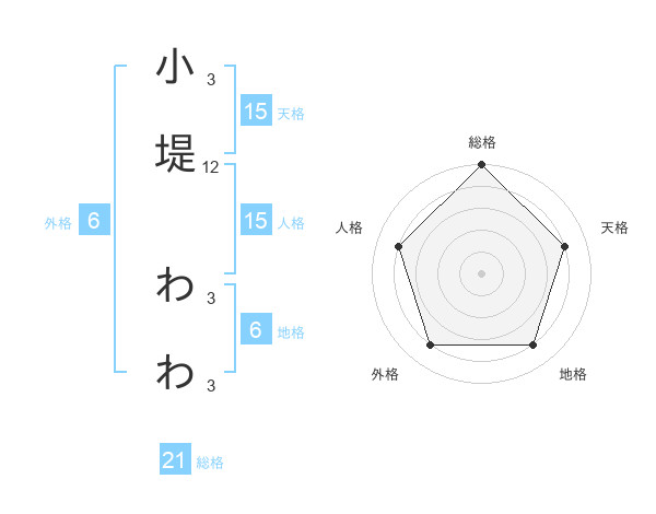 小堤 わわさんの総格は21画の5点!