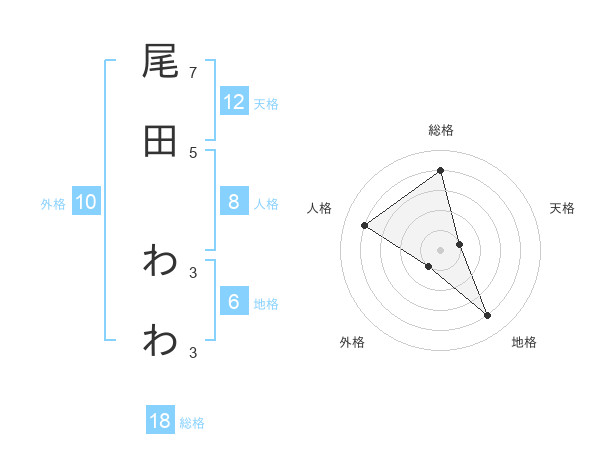 尾田 わわさんの総格は18画の4点!