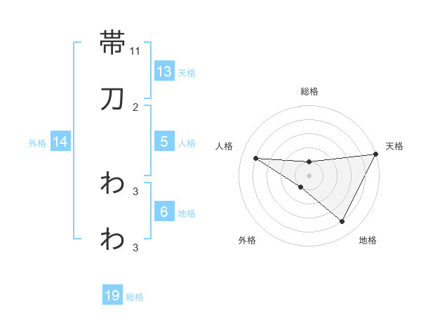 帯刀 わわさんを姓名の画数から五運を鑑定