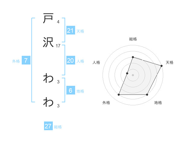 戸沢 わわさんの天格は21画の5点!