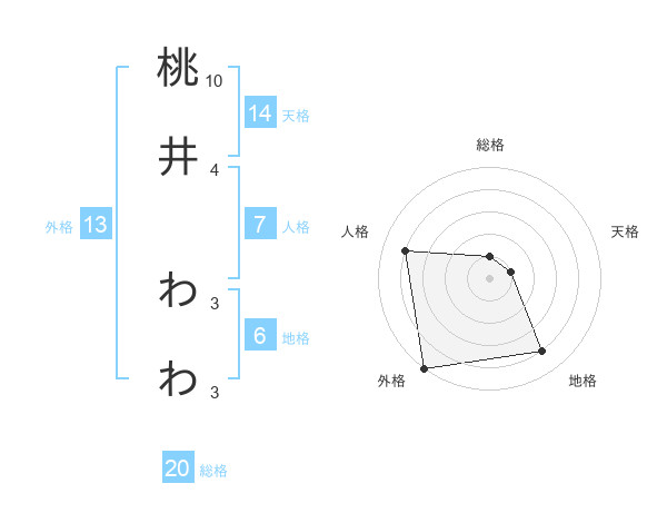 桃井 わわさんの外格は13画の5点!