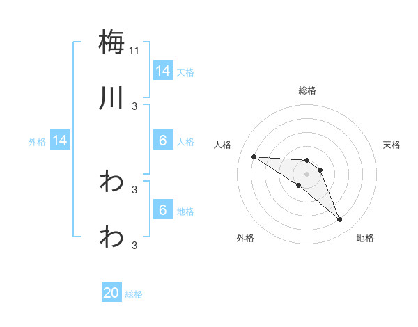 梅川 わわさんの総格は20画の1点!