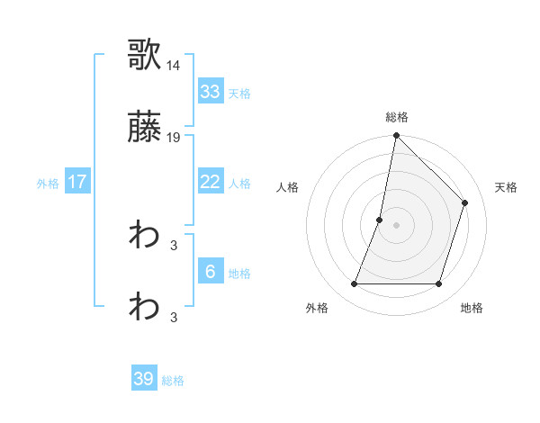 歌藤 わわさんを姓名の画数から五運を鑑定