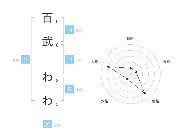 百武 わわさんの総格は20画の1点!