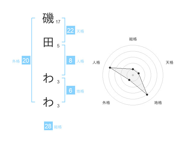 磯田 わわさんの天格は22画の1点!