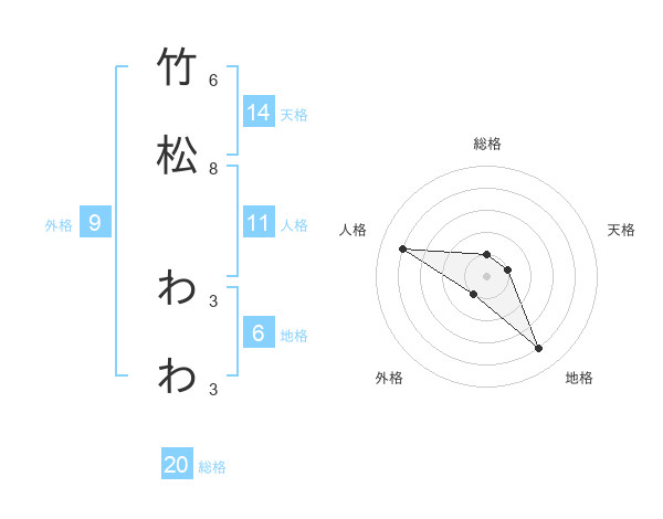 竹松 わわさんの総格は20画の1点!