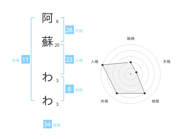 阿蘇 わわさんを姓名の画数から五運を鑑定