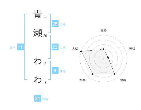 青瀬 わわさんを姓名の画数から五運を鑑定